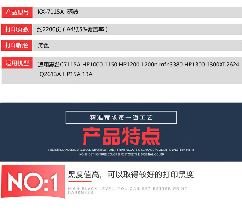 凱欣標(biāo)準(zhǔn)版 KX-C7115A硒鼓 適用惠普C7115A硒鼓HP1000 1150 HP1200 1200n mfp3380 HP1300 1300XI 2624 Q2613A易加粉 全國(guó)統(tǒng)一價(jià):146元