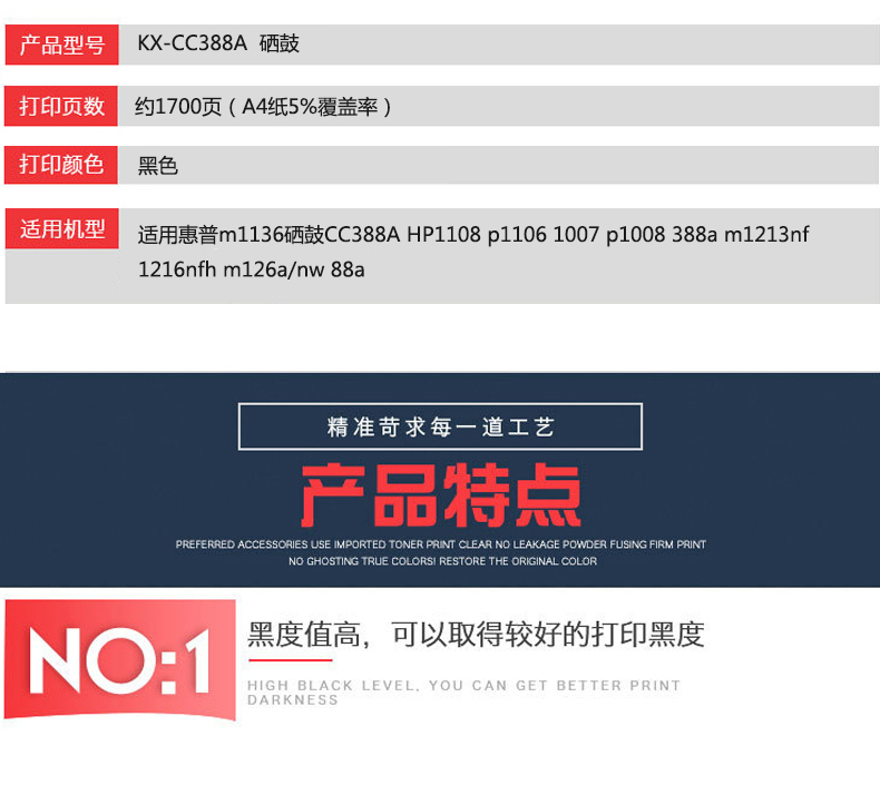 凱欣標(biāo)準(zhǔn)版 KX-CC388A硒鼓 適用惠普m1136硒鼓CC388A HP1108 p1106 1007 p1008 388a m1213nf 1216nfh墨盒m126a/nw打印機(jī) 全國(guó)統(tǒng)一價(jià):126元