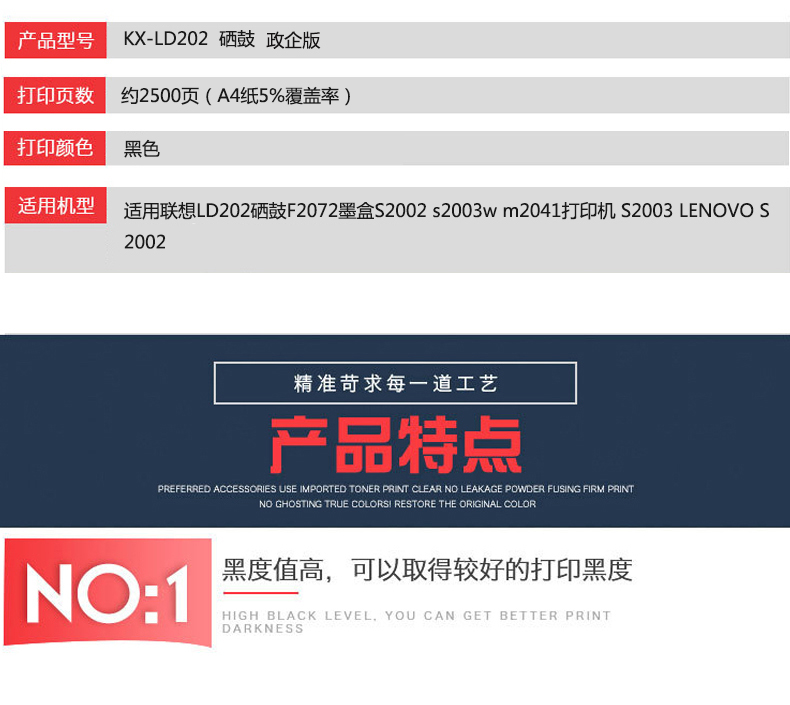 凱欣KX-LD202 適用聯(lián)想LD202硒鼓F2072墨盒S2002 s2003w m2041打印機 S2003 LENOVO S 2002 粉盒激光打印機 全國統(tǒng)一價:198元