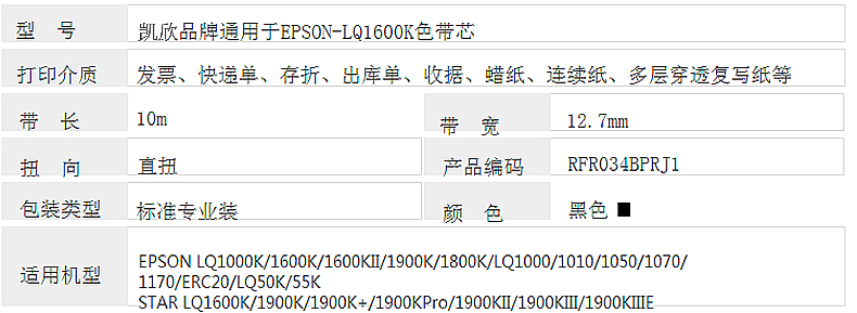 凱欣 KX-LQ1600KIIIH 適用愛普生EPSON LQ1600K3H 2680k 2090 FX2190 全國統(tǒng)一價:72元/6個